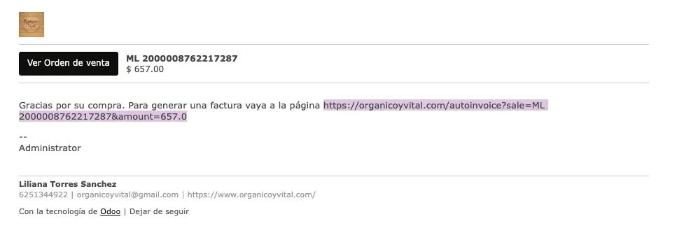 Si recibió un correo como el que se muestra en la imagen siguiente, por favor copiar desde https hasta la cantidad que es el final del mensaje.